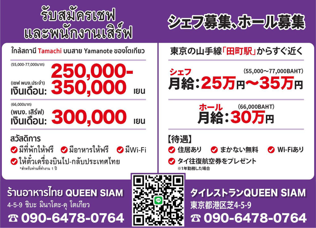【タイ料理シェフ募集・ホール募集】クイーンサイアム(東京都・港区)