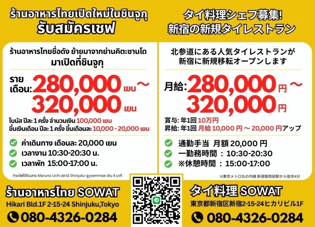 【タイ料理シェフ募集】SOWAT(東京都・新宿区)